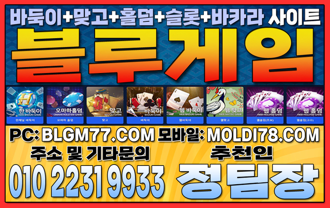 지금 바로 블루게임(바둑이,맞고,홀덤,슬롯,바카라)에서 검증된 온라인 게임을 시작하세요!정기적인 업데이트와 최신 정보 안내를 통해 항상 신뢰할 수 있는 서비스를 제공합니다. 소액 및 고액 금액에 관계없이 모두가 공평한 대우를 받으며, 타 업체 대비 높은 수익률을 기대할 수 있습니다.