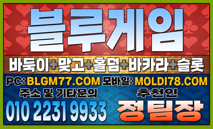 지금 바로 블루게임(바둑이,맞고,홀덤,슬롯,바카라)에서 검증된 온라인 게임을 시작하세요!정기적인 업데이트와 최신 정보 안내를 통해 항상 신뢰할 수 있는 서비스를 제공합니다. 소액 및 고액 금액에 관계없이 모두가 공평한 대우를 받으며, 타 업체 대비 높은 수익률을 기대할 수 있습니다.