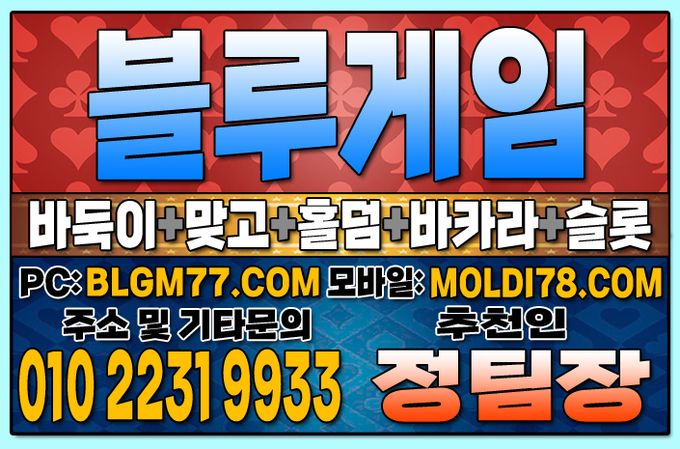 지금 바로 블루게임(바둑이,맞고,홀덤,슬롯,바카라)에서 검증된 온라인 게임을 시작하세요!정기적인 업데이트와 최신 정보 안내를 통해 항상 신뢰할 수 있는 서비스를 제공합니다. 소액 및 고액 금액에 관계없이 모두가 공평한 대우를 받으며, 타 업체 대비 높은 수익률을 기대할 수 있습니다.