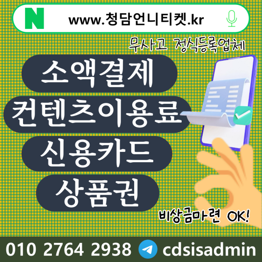 휴대폰소액결제 #신용카드현금 #청담언니티켓 ☎o1o 2764 2938 #정보이용료현금